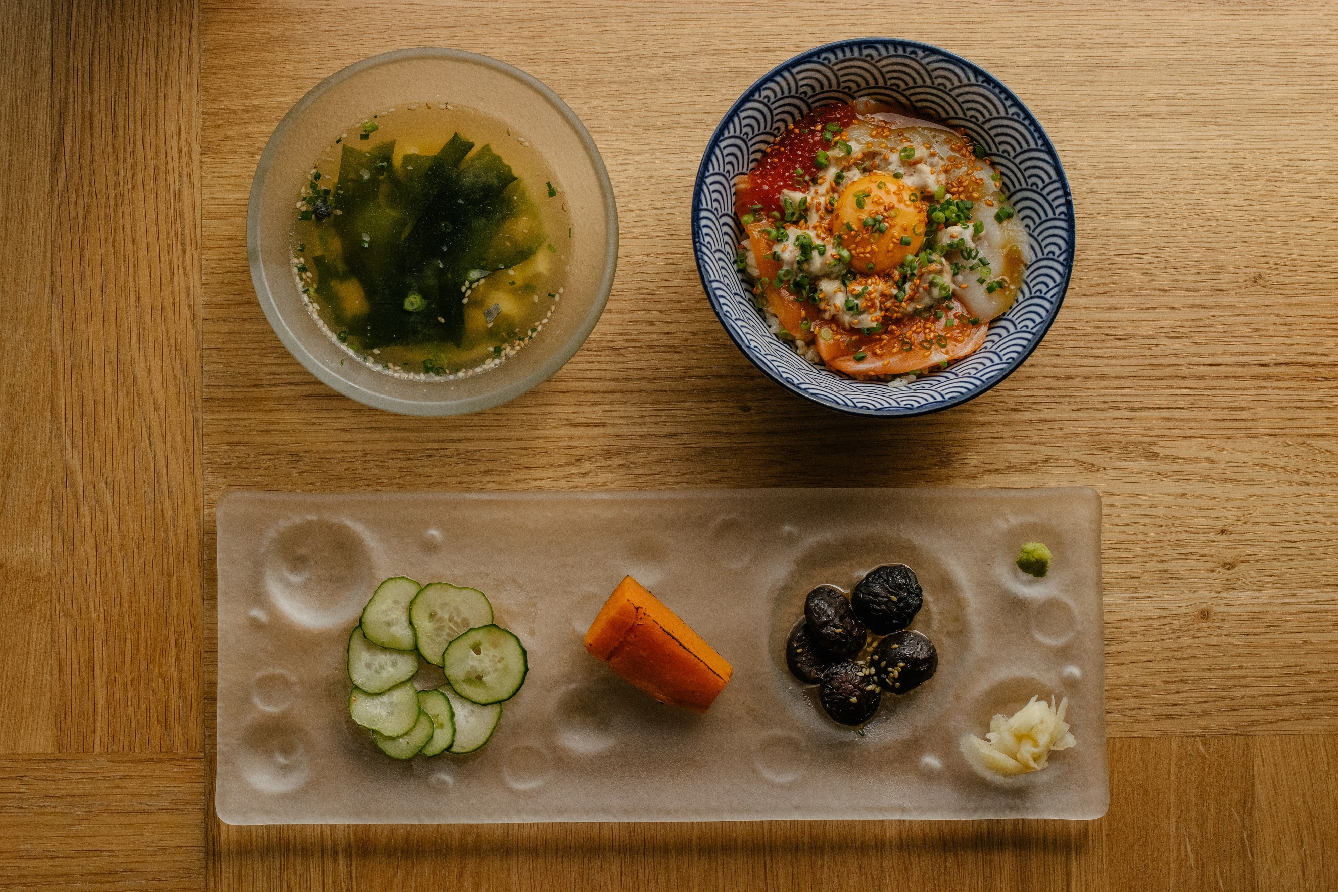 Для утреннего погружения в традиционную гастрономию Японии шеф-повар флагманского ресторана в Японском саду Артем Недобежкин предлагает два сета итидзю-сансай — «один суп и три блюда». Первый вариант «Кайсэн-дон» состоит из мисо супа, риса с гребешками, лососем, угрем, красной икрой и маринованным желтком и закусок — шиитаке, редьки, огурца, редиса и бобов. Второй, «Гокана», включает паровой рис, мисо-суп с треской, омлет с угрем, угольную рыбу в мисо, редис, шиитаке, тофу и десерт — моти.