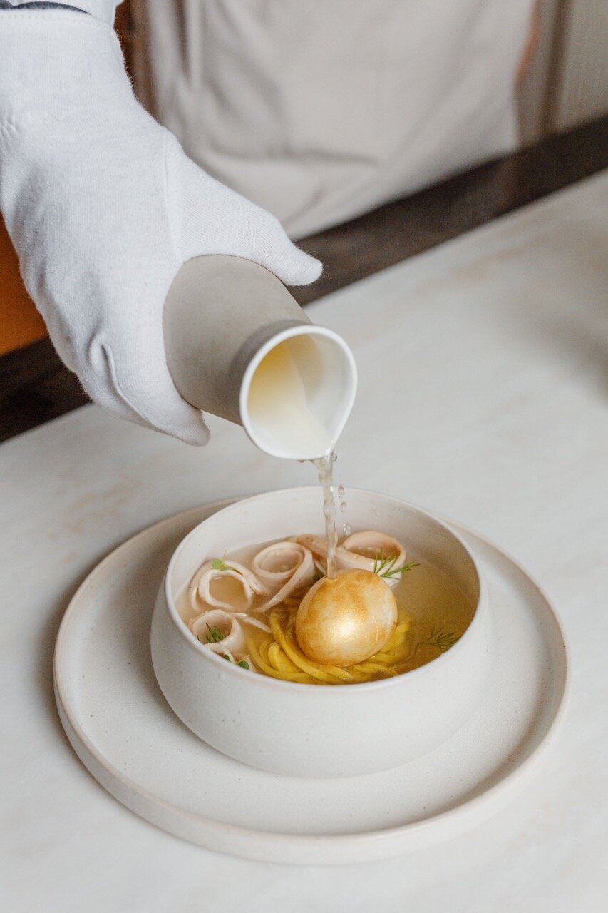 Как правило, посещение этого ресторана становится логичным продолжением променада по центральной площади города, где установлен памятник Екатерине II или в старейшем парке Краснодара, расположенных поблизости. Прошлое и настоящее переплетаются и в меню: современные техники приготовления применены в рецептах, прописанных в истории. Курник с соусом из щучьей икры, борщ на кубанский манер, староказачьи яхны с говяжими щечками или свиными ребрами, местные специалитеты: сало, разносолы, икра из патиссонов, вареники с крабом и икрой щуки — под стопку наливок собственного приготовления.