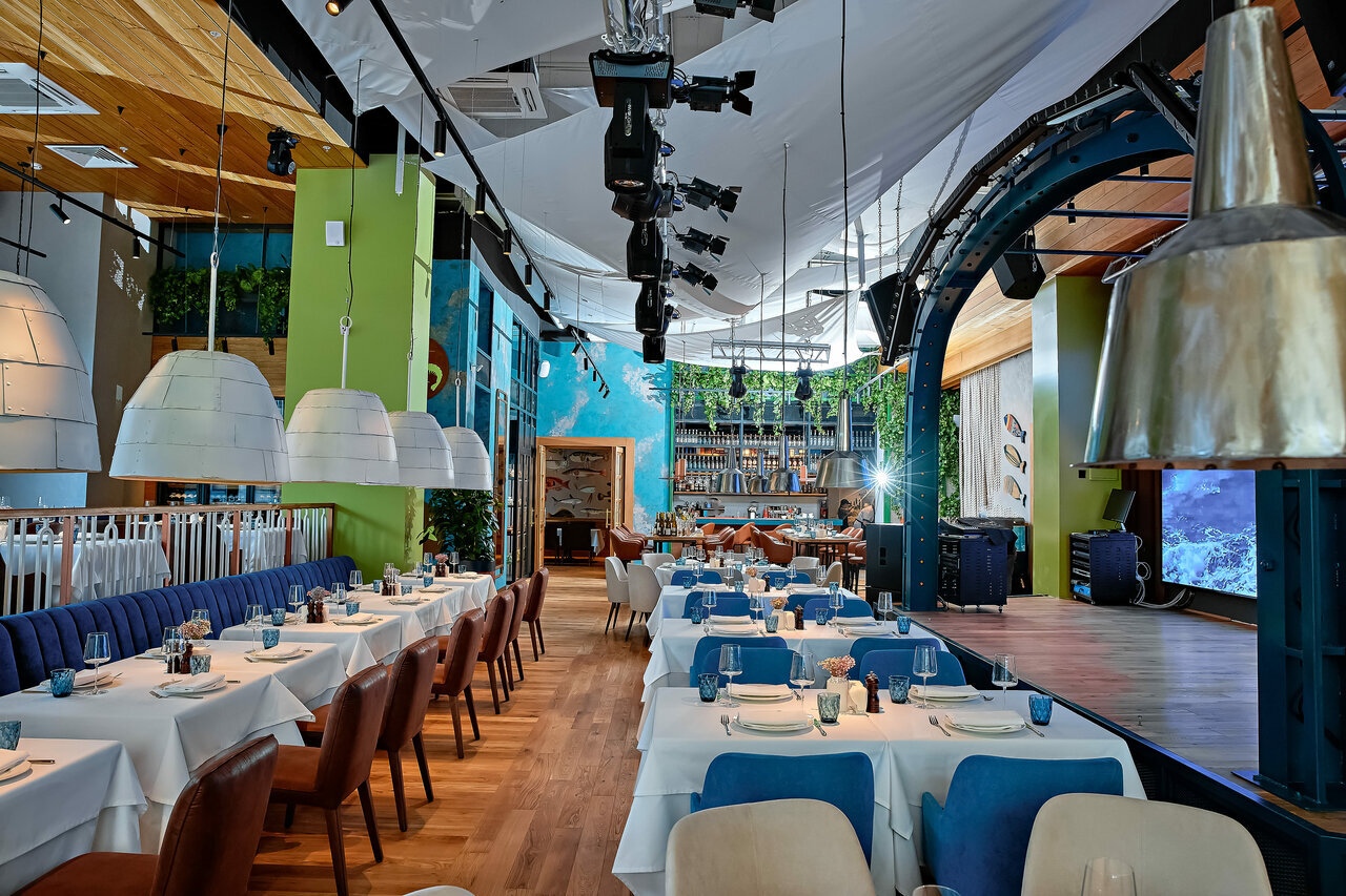 Один из немногих представителей «Новиков групп» в городе, но зато какой! Как всегда, с большим размахом во всем — в меню, площади и формате под лозунгом Fish me baby — а как иначе? Тут фирменные блюда Pinsky&Co соседствуют с классикой морской кухни, танцы под диджей-сеты объединились с деловыми обедами, романтическими ужинами и концертами, а завтраки сопроводили безлимитным вином, чаем и кофе до полудня.