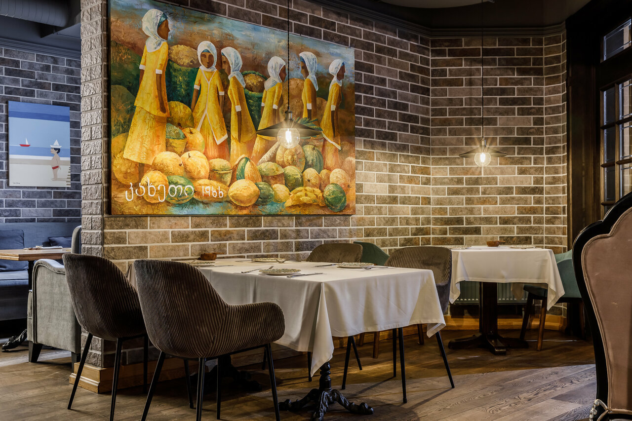 Название проекта популярной сети «Мадьяр Коллекшн» переводится «мама» — поэтому в гостях у «Дэда», как у мамы, должно быть радостно, уютно и вкусно. Уют, кроме аромата свежей выпечки из тандыра, добавляет эклектичный интерьер, душевный персонал и комната для маленьких гостей с услугами няни и играми для любого возраста.